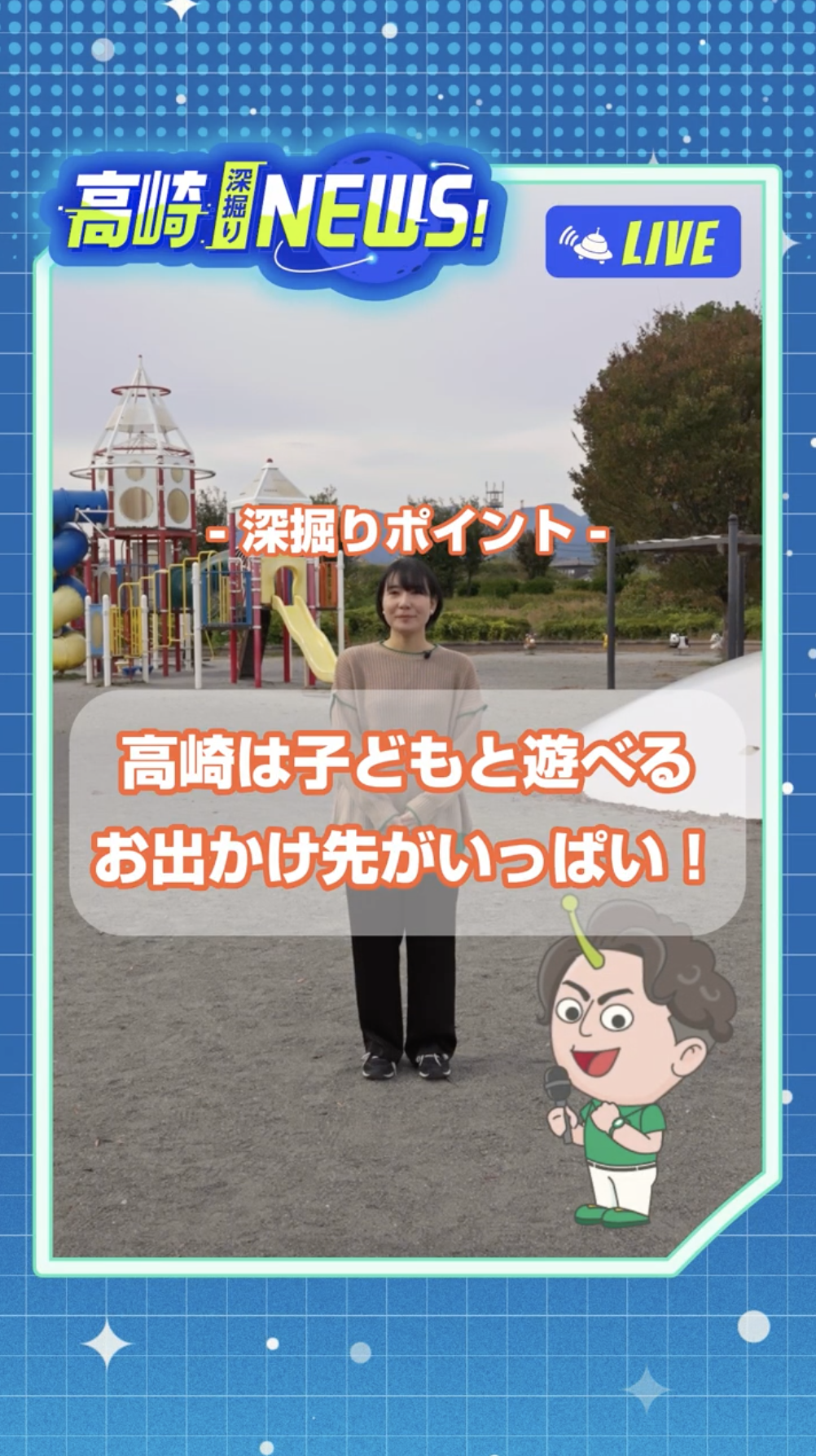 @takasaki_trip 高崎🪐深掘りNEWS! ★市内の公園編★ 宇宙でも人気急上昇!?【群馬県・高崎市】の魅力を深掘りリポート🎤 \今回の深掘りポイント/ 高崎はこどもとのびのび遊べるおでかけ先がいっぱいな街! 今回はアダーチが 高崎市内の「公園」事情について深掘り調査!🛸💨 ・水遊びができる公園 ・ながーいローラー滑り台がある公園 ・斬新なデザインの遊具がある公園 ・大きな古墳がある公園 などなど...少し足をのばせば、こどもから大人までが夢中になれるスポットが盛りだくさん!🛝✨ ぜひ遊び場探しやお散歩コース、春にはお花見スポットとして参考にしてみて🌈 他にも高崎市にはお出かけスポットがたくさん! 「高崎市観光情報サイト」も是非チェックしてみて✨ ~☆~☆~☆~☆~☆~☆~☆~ 宇宙で高崎市が人気になった理由を知りたい方は….! 昨シーズンの#宇宙人あだちの高崎TRIP もみてね! \ドラマ公式サイトはこちら/ https://takasaki-iju-drama.jp/ #群馬県 #高崎 #公園 #週末お出かけ