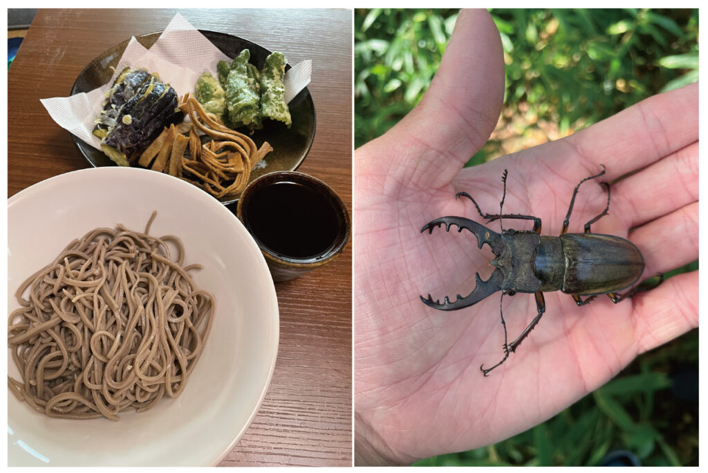 左:自宅で倉渕産の蕎麦粉を使用して手打ちしたお蕎麦